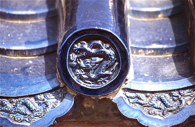 Erst gegen halb 10 hinaus in den Nebel gewagt und den eigentlichen Grund für den Ausflug nach Chengde aufgesucht: den alten Sommerpalast. Sind etwas enttäuscht, denn viele der Gebäude existieren nur mehr als Fundamente oder werden als Souvenirstände verwendet. Die ganze Anlage macht im trüben Licht des verregneten Vormittags einen recht heruntergekommenen Eindruck, das totale Fehlen westlicher Touristen verstärkt unser Gefühl der Abgeschiedenheit. Spazieren gegen Mittag Richtung Stadtzentrum und finden den Essensmarkt, auf dem wir uns an einem Stand mit dampfgegarten, fleischgefüllten Teigbällchen verköstigen - nach dem enttäuschend verlaufenen Vormittag ein echter Lichtblick. Gesättigt bestaunen wir das Angebot an Eßwaren: Obst und Gemüse (bekannt und unbekannt), Teigwaren (roh, zubereitet), Geflügel (lebend, tot, z.T. gerupft), Fisch (lebend, selten tot), Krabben, Schlangen (lebend, ausgenommen, gehäutet), aber alles ohne den sonst unvermeidlichen Fischgeruch. Verlassen das bunte Treiben, um unseren Zug zurück in die Hauptstadt nicht zu verpassen. Die Fahrt geht zuerst durch hügelige, teilweise zerklüftete Landschaft, später wird es flacher und Obstbäume und Getreidefelder bestimmen das Bild. Erst in den letzten 20 Minuten lassen sich in der hereinbrechenden Dunkelheit Hochhäuser ausmachen. Wir beziehen wieder das uns schon bekannte Hotel für eine letzte Nacht in Peking.