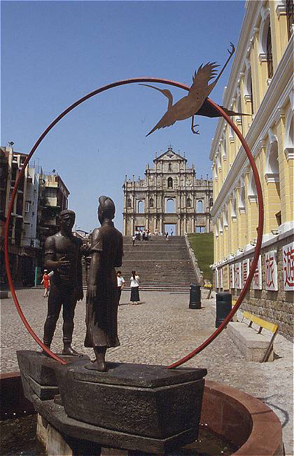Mit Hotelbus zu MTR-Station und dann weiter nach Hongkong-Island. Dort problemlos Karten für die 8 Uhr 45-Fähre nach Macao bekommen und nach einer Stunde Fahrt über das Delta des Perlflusses mit einem neuen Stempel im Paß eine andere Welt betreten. Zwar kann man alles in HK-Dollar bezahlen (die Landeswährung heißt "Pataca"), aber die Portugiesen haben dieser Stadt in über 400 Jahren ihren Stempel aufgedrückt. Spazieren zuerst zum "Fort Montes", das heute das reizende Geschichtsmuseum der Stadt beherbergt und einen hübschen Blick über die Stadt gewährt. Fahren auf der anderen Seite mit der Rolltreppe hinunter und sind gleich bei der Basilika "Sao Paolo", die nach einem Brand im Jahre 1835 nur mehr aus der imposanten Treppe und der noch beeindruckenderen Fassade besteht. Nehmen den Bus vom kolonial beeinflußten Viertel zum pantheistischen "Kun-Iam-Tempel", der einen 150 Jahre alten Bonsai in Form eines chinesischen Schriftzeichens beherbergt. Von dort spazieren wir zum klassisch chinesisch angelegten "Lu-Lim-Ioc-Garten" (mit Pavillons, Bambus und Goldfischteichen) neben eindeutig portugiesischen Gebäuden aus dem vorigen Jahrhundert mit Kolonnaden und grün gestrichenen Balkonen. Der nächste Bus bringt uns zurück ins Zentrum zum Regierungspalast und dann ist es nicht mehr weit zum "Praça Leal Senado", dem wellenförmig gepflasterten Hauptplatz, und dem "Leal Senado" mit der berühmten barocken Bibliothek. Flanieren durch die endlich erwachenden Geschäftsstraßen und nehmen gegen halb sechs in einem portugiesischen Restaurant ein ausgezeichnetes Abendessen zu uns, nach europäischem Geschmack mit einem guten Fläschchen Wein dazu. Strahlen wie ein neuer Schilling und machen uns gut gelaunt auf den Weg zurück zum Fährhafen und ins hektische Hongkong. Dieser Tag war wie ein Ausflug nach Portugal, beschaulich und gemütlich, sogar die dort lebenden Chinesen strahlen etwas Mediterranes aus. Wie wird sich diese Stadt nach der Rückgabe an China im Dezember 1999 - in nicht mal 2 Monaten - wohl entwickeln?