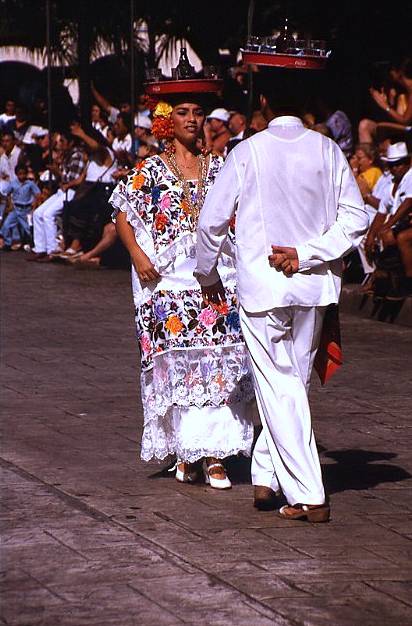 Weil heute Sonntag ist, haben wir uns etwas Kultur vorgenommen. Zuerst spazieren wir zum Zócalo und wollen die Kathedrale besichtigen, aber wegen einer Messe ist das nicht gut möglich. Spazieren also nordwärts zum hübsch hergerichteten Anthropologischen Museum und fahren anschließend mit einem Bus zurück ins Zentrum, wo wir einen kurzen Besuch im Regierungspalast einlegen. Die Gemälde im Arkadenhof betrachten wir zu den Klängen des städtischen Blasorchesters, das gerade ein Konzert im großen Saal gibt. Jetzt um 12:00 ist in der Kathedrale "Schichtwechsel" und wir können einen kurzen Blick in das schlichte, aber schöne Innere werfen. Schlendern durch das bunte Treiben am Hauptplatz (Marktstände, Souvenirs, Luftballons, Zuckerwatte ...) zum Museum moderner Kunst, das sonntags bei freiem Eintritt zugänglich ist. Im Innenhof findet gerade ein Jazz-Konzert statt und die rauchige Stimme einer Sängerin begleitet uns auf unserem einstündigen Rundgang. Wieder am Platz geht's weiter, denn vor dem Rathaus wird yucatekischer Volkstanz geboten. Nach so viel mehr Kultur als erwartet, entspannen wir uns am Pool und beratschlagen anschließend unsere Mietwagen-Route. Außer einem traditionell yucatekischen Abendessen und Rucksack packen haben wir heute nichts mehr vor.