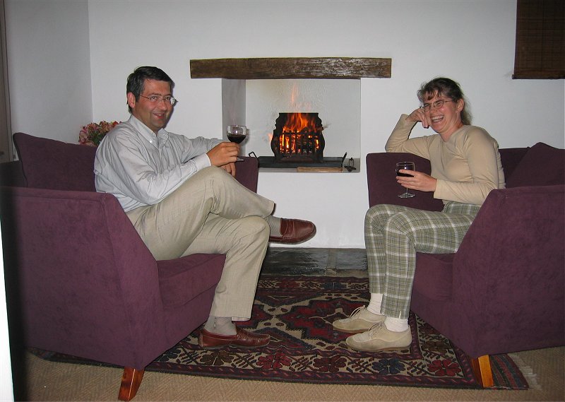 Die Zimmerwirtin reserviert für uns im Restaurant Koornlands einen Tisch und wir vertilgen dort auch ein ganz gutes Abendessen, wenn auch die Portionen kleiner als bisher erlebt sind. Zurück im Zimmer köpfen wir noch ein Fläschchen Wein und halten ein Zündholz an den Holzstapel im offenen Kamin. Bald lodert ein munteres Feuerchen und wärmt uns arme, unterkühlte Sommerurlauber. Verheizen den ganzen Holzvorrat, lauschen einer CD und gehen erst recht spät schlafen.