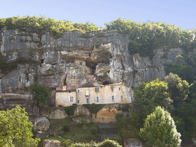 Wir fahren weiter und kommen wieder zu einem Felsüberhang, der für Wohnzwecke adaptiert wurde. Diesmal ist es das Maison Forte de Reignac, einem Gutshof aus dem späten 17. Jhdt. Mit den in den Felsen gehauenen Wohnräumen hinter der gemauerten Fassade und den authentischen Möbeln wirkt es richtig wohnlich. Diese eher neue Sehenswürdigkeit (erst die zweite Saison geöffnet) ist eine hübsche Ergänzung zu Roque Saint Christophe.