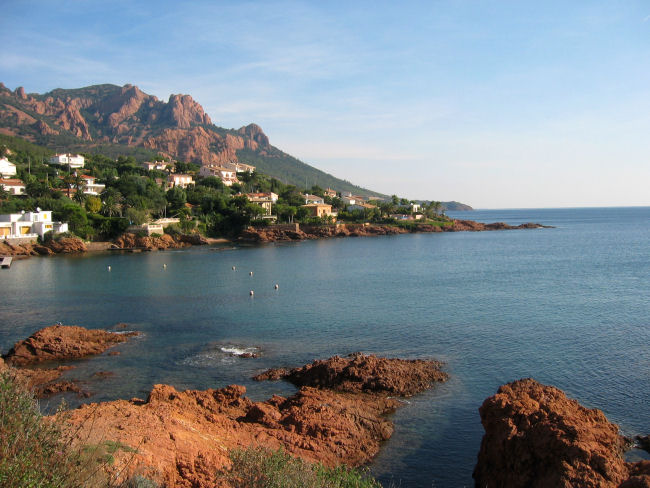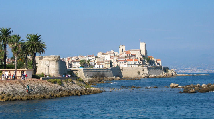 Das Frühstück nehmen wir mit dem Personal und den anderen Gästen am großen Familientisch ein. Durchqueren dann auf unserem Weg nach Cannes die Orte Fréjus und Saint Raphaël und bleiben unterwegs häufig stehen, um die vielen schönen Ausblicke auf rote Felsen, kristallklares Wasser und malerische Fischerdörfer zu genießen. Kurz vor 12:00 stellen wir unser Auto in die Parkgarage unter dem Festivalpalast und beginnen die Besichtigung mit dem Aufstieg zur Altstadt. Die engen, steilen Gassen führen zum Kastell, das einstmals die Bucht beschützte. Leider trübt leichter Dunst die Fernsicht, aber es ist trotzdem recht hübsch hier heroben.