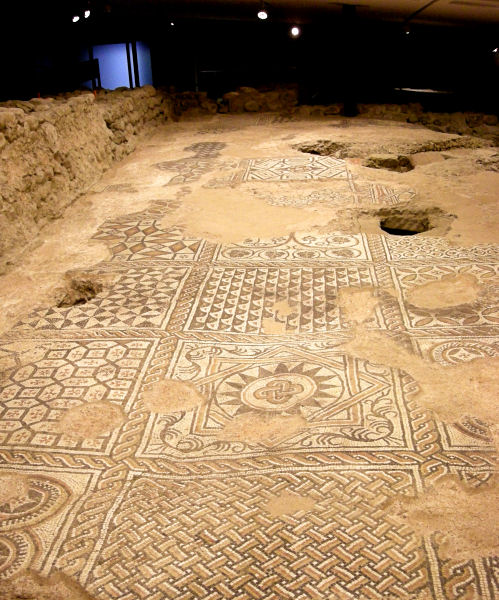 Unser nächstes Ziel, die Kirche St. Jacubin ist leider ab Mittag zu, daher spazieren wir weiter zum Fluß Garonne. Überqueren diese auf der Hängebrücke Passerelle und werfen auch einen Blick aus der Ferne auf die Pont du Canal, wo ein Kanal den Fluß überquert. Danach halten wir noch Mittagsrast in einer bretonischen Crèperie bei der Jacubiner-Kirche und holen dann das Auto aus dem Parkhaus. Fahren ostwärts aus der Stadt in einen Vorort zu den gallo-römischen Ausgrabungen Villascopia. Sind die einzigen Besucher und bekommen mit 3D-Brille die ganze Multimedia-Pracht präsentiert: sehen einen 35-minütigen Film, der eine Liebesgeschichte im ersten nachchristlichen Jahrhundert in dieser Villa zum Thema hat, aber leider nur auf französisch und nicht untertitelt. Danach kann man die Fundstücke (Schmuck, Mosaike, Büsten etc.) bestaunen und zum Abschluß noch durch die ausgegrabenen sehr fragmentarischen Thermen der Villa stöbern. Aber alles in allem erfüllt es nicht unsere Erwartungen.