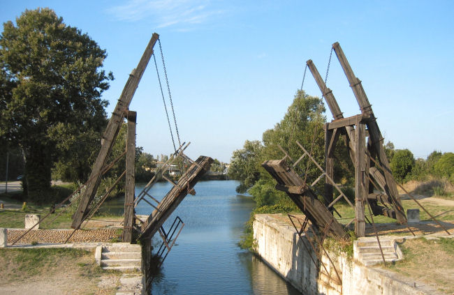 Zum Abschluß der heutigen Besichtigung fahren wir noch an den südlichen Stadtrand, dort wurde von findigen Tourismusleuten die von Van Gogh gemalte Pont de Langlois nachgebaut. Hauptsächlich sind japanische Touristen zu sehen, die die aufgeklappte - recht unmotiviert in der Landschaft stehende - Zugbrücke bewundern und fotografieren.