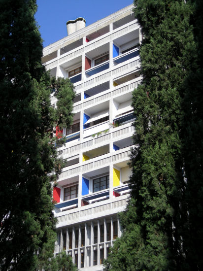 Grummelnd steigen wir in die hoffnungslos überfüllte Metro um und fahren zum "Umsteigeplatz" Prado, dort ergattern wir einen Bus 21 zur Cité Radieuse. Der berühmte Architekt Le Corbusier hat hier mit diesem Hochhaus eine kleine Stadt auf Stelzen gebaut, im Jahr 1952 eine städtebauliche Revolution. Auf den ersten Blick macht das Gebäude keinen einladenden Eindruck (es wird im Augenblick gerade restauriert), aber in der Eingangshalle werden wir von einem netten Portier empfangen, der einiges zu erzählen weiß und uns den Besuch in einer noch fast original eingerichteten Wohnung empfiehlt. Die für die damalige Zeit wahrlich futuristische Planung begeistert auch uns und wir genießen die Atmosphäre noch in einem Café das zum dort einquartierten Hotel gehört.