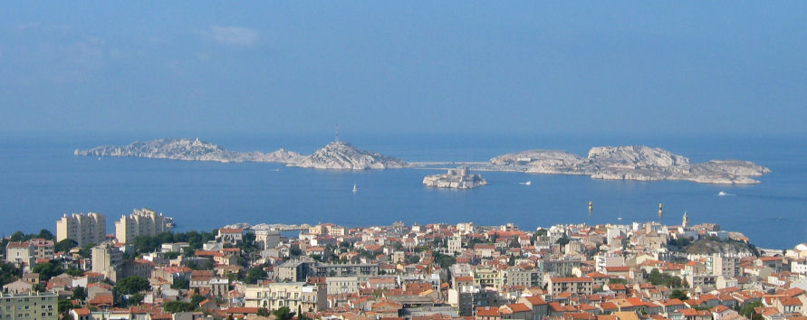 Nehmen dann den Bus 60 zur Wallfahrtskirche Notre Dame de la Garde, die neobyzantinisch auf einem Hügel über dem Hafen thront und die Seefahrer beschützt. Sie ist über und über mit Gold und Mosaiken geschmückt und der Blick über die Stadt und das Meer zu den vorgelagerten Inseln ist sehr hübsch. Nach einer Stunde Besichtigung fahren wir zu Mittag wieder hinunter ins Zentrum. Dort staut es rundherum, Polizisten mühen sich vergeblich mit dem Verkehr ab und wir verlassen unplanmäßig an einer Kreuzung den Bus. Spazieren dann durch die steilen Gassen des Altstadt-Viertels zum Centre de la Vieille Charité. Es gäbe eine Van Gogh-Ausstellung, aber wie wir feststellen, erst ab morgen. Halten stattdessen Mittagsrast im arkadengeschmückten Innenhof und gehen dann zur Kathedrale. Die ist aber montags zu und zudem noch von einer riesigen Baustelle umgeben, denn die ganze Uferpromenade am neuen Hafen wird umgestaltet. Ergattern mit etwas Mühe noch den 83er-Bus, der fährt planmäßig die ganze Küstenstraße aus und wir wollen so gemütlich diese Seite der Stadt kennenlernen. Aber beim Hafen ist Schluß: die innerstädtischen Buslinien sind wegen des EU-Indien-Gipfels und der Anwesenheit von Präsident Sarkozy und dem Vorsitzenden der EU-Kommission Barroso kurzerhand aus Sicherheitsgründen gesperrt.