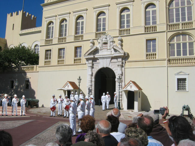 Bis zur Wachablöse um 11:55 setzen wir uns in eine Bar, dort pfeift einem der Wind nicht so stark um die Ohren wie auf dem offenen Platz. Trommeln und Fanfaren kündigen das Spektakel an und wir drängeln uns mit Hunderten vorwiegend deutschen Touristen an der Absperrung, um irgend etwas zu sehen. Nach 10 Minuten ist die ganze Angelegenheit vorbei und wir beeilen uns rasch zur Palastbesichtigung zu kommen, um nicht mit zu vielen Gleichgesinnten beim Eintritt Schlange stehen zu müssen. Der Audioguide führt uns durch prächtig möblierte Räume und durch die Geschichte des Fürstenhauses. Fotografieren ist dort allerdings leider verboten.