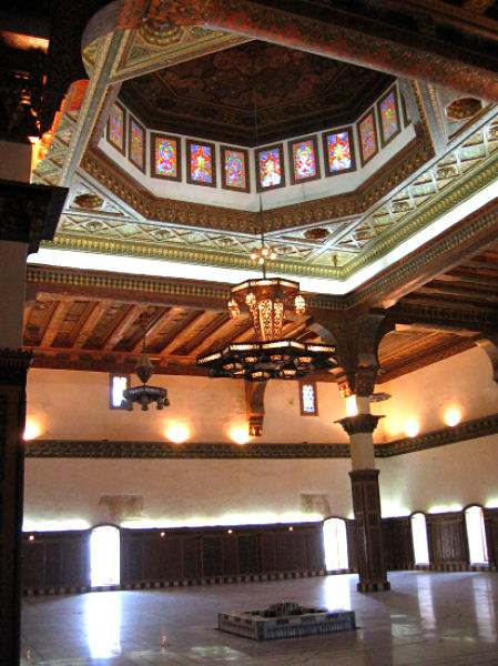 im Zentrum der Stadt. Obwohl eigentlich nur mehr Ruine, ist die gesamte Anlage mit dem (nun trockenen) Wassergraben, dem Viadukt und den Tortürmen noch immer imposant, auch wenn das moderne, römisch inspirierte Theater im Inneren fehl am Platz wirkt. Im totalen Kontrast zu den vielen Steinen, Staub und Mauern steht der Thronsaal mit seinen prachtvollen Intarsien und Schnitzereien an den Deckenbalken.