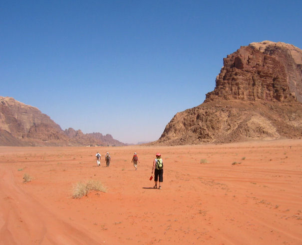 Pünktlich um 8:00 Uhr geht es los, wir verlassen die Gegend um Petra und folgen der Wüstenstraße zum Wadi Rum
