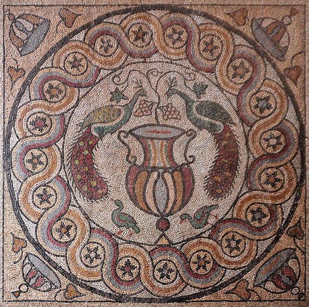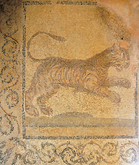 Nicht weit davon entfernt steht das "Odeon", ein kleines, ebenfalls rekonstruiertes Theater mit einem wunderschönen großen Mosaik daneben. Quer über der Straße befindet sich das frei zugängliche "westliche Ausgrabungsgelände". Hier ist Forschergeist gefragt, dann das brusthohe Gras und Gestrüpp erschwert den Zugang zu den diversen Ruinen. In einigen sind, geschützt durch Gitter, recht hübsche Mosaike zu bewundern, sonst braucht man schon etwas Phantasie, um sich hier eine Stadt vorzustellen.