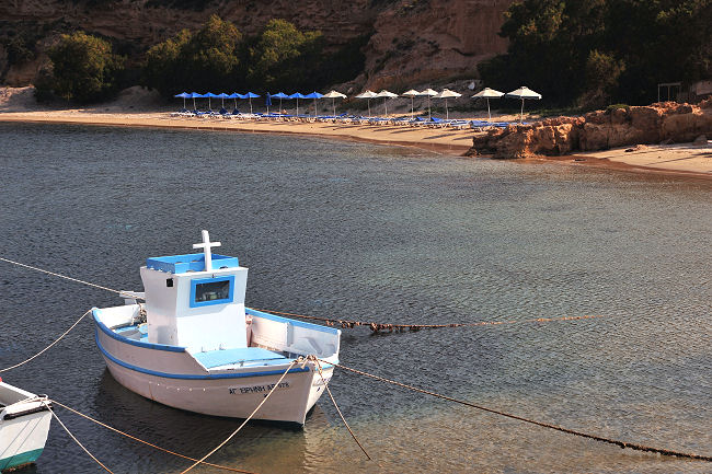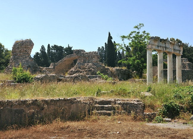 An einem davon stehen die malerischen Ruinen der 1500 Jahre alten Basilika Agios Stéfanos mit noch erhaltenen Bodenmosaiken.