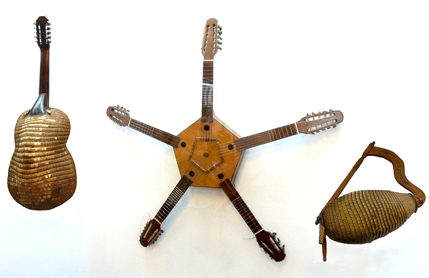 Spazieren trotzdem zur Calle Jaen weiter, dort befinden sich einige kleine Museen und wir versuchen unser Glück. Finden das private Musikinstrumentenmuseum mit diversen Flöten, Gitarren, Schlag- und Streichinstrumenten. Dabei sind prähistorische Funde ebenso ausgestellt wie Kunstwerke mit musikalischen Motiven und skurrile Klangkörper wie Gitarren aus Gürteltieren oder mit fünf Hälsen.