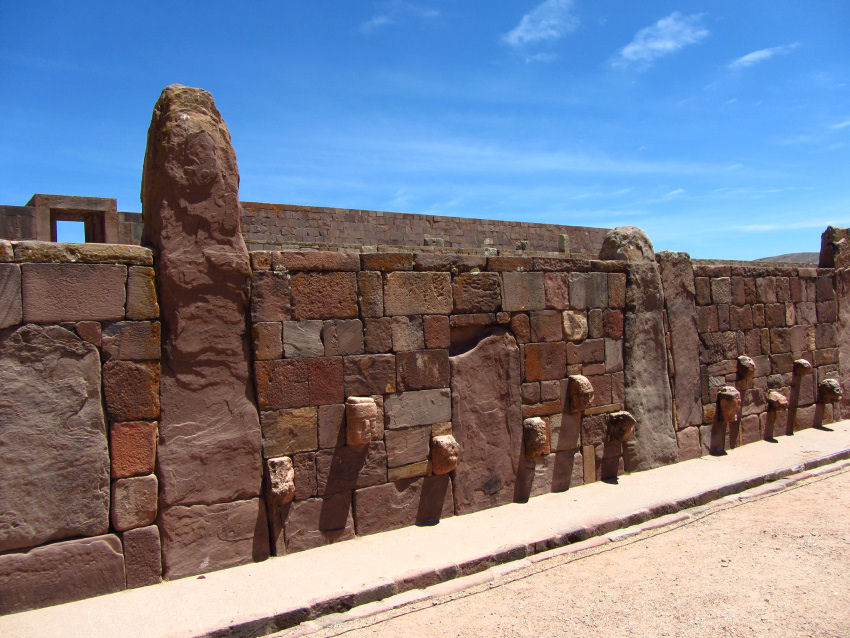 Den Abschluss der Besichtigung von Tiwanaku macht ein Besuch beim etwas außerhalb gelegenen Tempel Pumapunku. Hier gibt es eine große Steinplattform, viele behauene Steine und ein paar wieder aufgerichtete Stelen zu besichtigen. Alle hier verwendeten Steine sind von den Steinbrüchen auf der Sonneninsel im Titicacasee hierher gebracht worden, von wem und wie ist noch immer nicht geklärt.