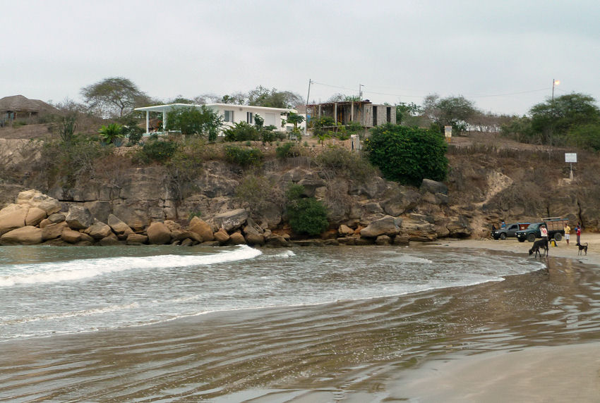 Hasten zu den Taxis, lassen uns zum Busterminal bringen, erstehen ein Ticket für einen Bus der laut Fahrplan in 5 Minuten abfährt und rennen mit dem Gepäck den weiten Weg zum Bussteig. Werfen die Rucksäcke in das Gepäckfach, steigen ein und schon geht die Fahrt los. In den nächsten zwei Stunden haben wir Zeit uns von der Hektik zu erholen. Da es schon dunkel ist, bekommen wir von der Landschaft nichts mit, und auch das System der Haltestellen in Santa Elena erschließt sich uns nicht. Eher zufällig und mit Hilfe einheimischer Reisender steigen wir in der Nähe des Busterminals aus (wird von dieser Linie nicht direkt angefahren!). Rufen Bertram an, damit er uns am Straßenrand aufliest und schon bald rauschen wir durch die Dunkelheit nach Colonche, der Wirkungsstätte unseres Freundes. Bekommen ein kleines Abendessen serviert, feiern noch ein wenig unser Wiedersehen und verziehen uns bald sehr müde aufs Zimmer.