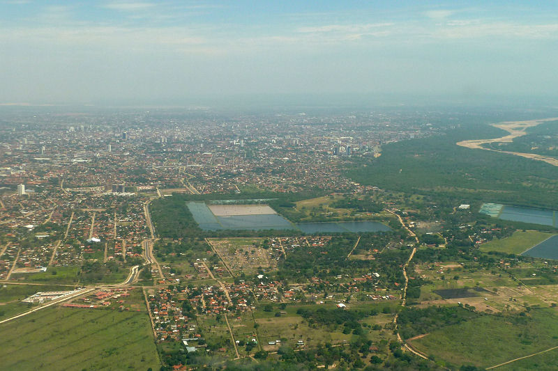 Nach einem reichhaltigen Frühstück machen wir unser Gepäck flugtauglich und werden pünktlich um halb 10 abgeholt. Nach 20 Minuten ist der Flughafen erreicht und wir können die Rucksäcke aufgeben. Pünktlich heben wir mit einer spärlich besetzten Maschine ab und fliegen gerade mal 25 Minuten bis Cochabamba. Dort müssen wir umsteigen und mit einer knallvollen Maschine geht es in 50 Minuten nach Santa Cruz im gleichnamigen Departamento. Hier erwarten uns bereits Jaime von der lokalen Agentur und über 30°C im Schatten. Das ist ja ganz was Neues! :-)
