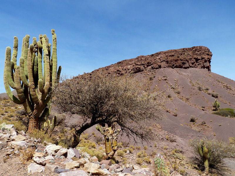 Nun rauschen wir etwa 60 km über die blendend weiße Salzkruste zur Isla Inkahuasi (Haus der Inka, auch Fischinsel genannt) wo wir gegen halb zwei eintreffen. Sie ist auch schon von Touristengruppen belagert und hier vertilgen wir erst einmal das inkludierte Mittagessen im kleinen Restaurant. Dann werden wir zum Besuch des Panoramawegs entlang der riesigen Kakteen entlassen. Die mehrere Meter hohen und mehrere hundert Jahre alten Säulenkakteen (9 m = 900 Jahre) vor dem gleichförmigen weißen Hintergrund sind wirklich beeindruckend. Es gibt sie zu Hunderten in allen möglichen Formen und Ausprägungen. Erstaunlich für unsere Verhältnisse ist, dass uns so viel Natur, so faszinieren und begeistern kann!