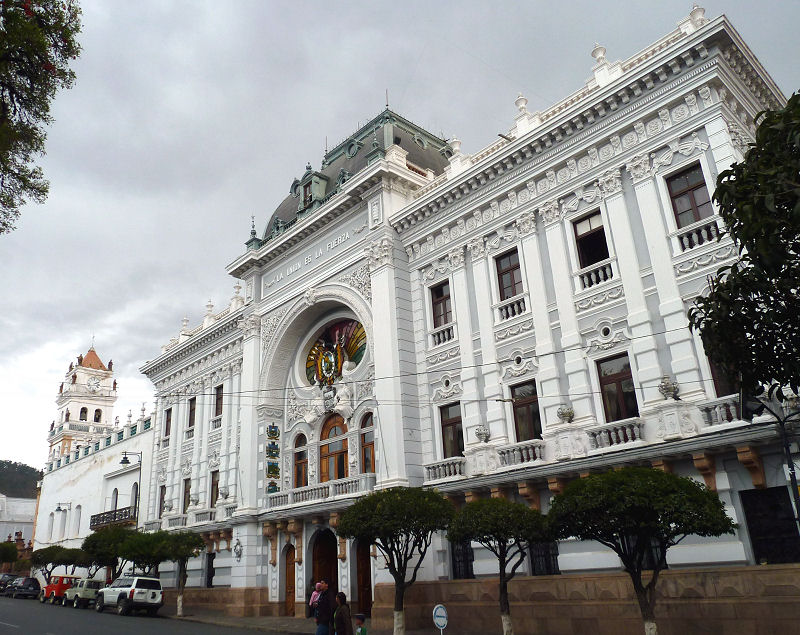 Da wir nun wieder gemäß unserem ursprünglichen Zeitplan unterwegs sind, warten wir wie vereinbart um halb 10 auf unseren heutigen Fremdenführer, denn es steht die Besichtigung der konstitutionellen Hauptstadt Boliviens auf dem Programm. Sucre gilt als die am besten erhaltene spanische Kolonialstadt Südamerikas und wurde 1992 zum UNESCO Weltkulturerbe erklärt. Bekommen aber von der Rezeptionistin mitgeteilt, dass sich unser Guide Fredy verspäten wird. Wir erfahren dann später, dass heute nationaler Tourismustag ist und deshalb alle in dieser Branche Tätigen zu einer Parade vor dem Provinzparlament verdonnert wurden.