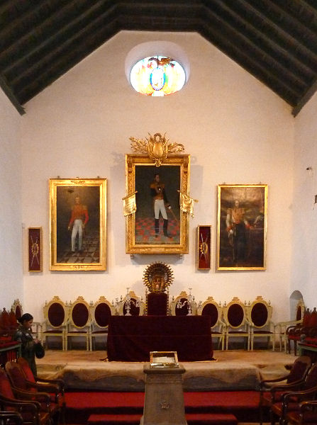 Jetzt fehlt eigentlich nur mehr die Casa de la Liberdad am Hauptplatz. Hier im Gebäude der ersten Universität des Landes liegt sozusagen die Wiege Boliviens, denn hier in der juridischen Fakultät wurde 1825 die Unabhängigkeitserklärung unterzeichnet. Eine Besichtigung ist nur im Rahmen einer Führung möglich, aber die ist wieder sehr informativ und bringt uns noch einmal die Geschichte des Landes, der Stadt und der wichtigsten Persönlichkeiten näher.