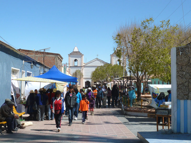 Nach der Besichtigung fahren wir weiter bis zum Ort Curahuara de Carangas. In diesem unscheinbaren Städtchen steht eine einmalige Sehenswürdigkeit, die nicht zu Unrecht den Beinamen "Sixtinische Kapelle des Altiplano" trägt.