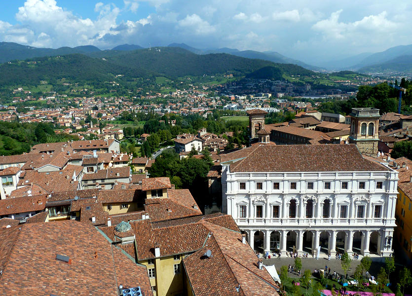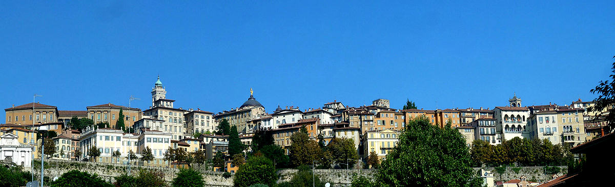 Nach einem nicht weltbewegenden Frühstück brechen wir auf gen Norden, ein Besuch von Bergamo steht noch auf dem Programm. Wieder bremst uns der dichte Verkehr etwas aus und wir erreichen später als geplant die "zweigeschoßige" Stadt. Parken in der Nähe der Standseilbahn und verlassen in einer der beiden Kabinen die moderne Unterstadt Bergamo bassa.