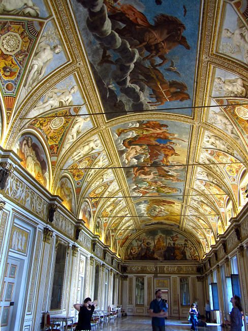 Nördlich der Stadt liegt im kleinen Ort Colorno eine der ehemaligen Residenzen der Herzöge von Parma. Eine Besichtigung ist nur im Rahmen einer Führung möglich. Um 15:00 Uhr folgen wir einer nur italienisch sprechenden jungen Dame durch den Piano nobile, zur recht großen Privatkapelle der Farnese und in die privaten Räume von Francesco Farnese. Alle Wohn- und Repräsentationsräume sind bis auf die originalen Marmorböden und einige Wandmalereien leer, die Kirche ist aber recht prunkvoll ausgestaltet. Der Palast liegt in einem barocken Garten, der dem Ensemble den Beinamen "Versailles der Herzöge von Parma" bescherte - dieser Vergleich ist aber maßlos übertrieben!