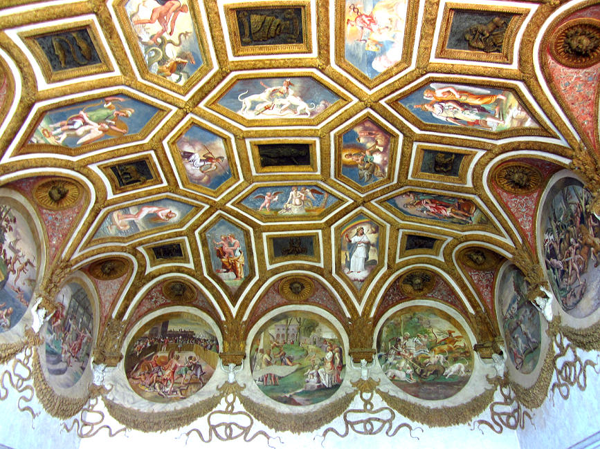 Danach sehen wir uns den Dom an, sehr hell und reich geschmückt. Nebenan steht mit dem Palazzo Ducale eine der Hauptsehenswürdigkeiten der Stadt. Erstehen ein Sammelticket für die diversen hier untergebrachten Museen und beginnen mit den endlosen, prachtvoll ausgeschmückten Zimmerfluchten, Sälen und Arkadenhöfen. Nach einer Stunde schauen wir weiter zum alten Schloss gleich nebenan mit der "Camera degli Sposi", einem Raum mit Wandmalereien aus dem späten 15. Jahrhundert.