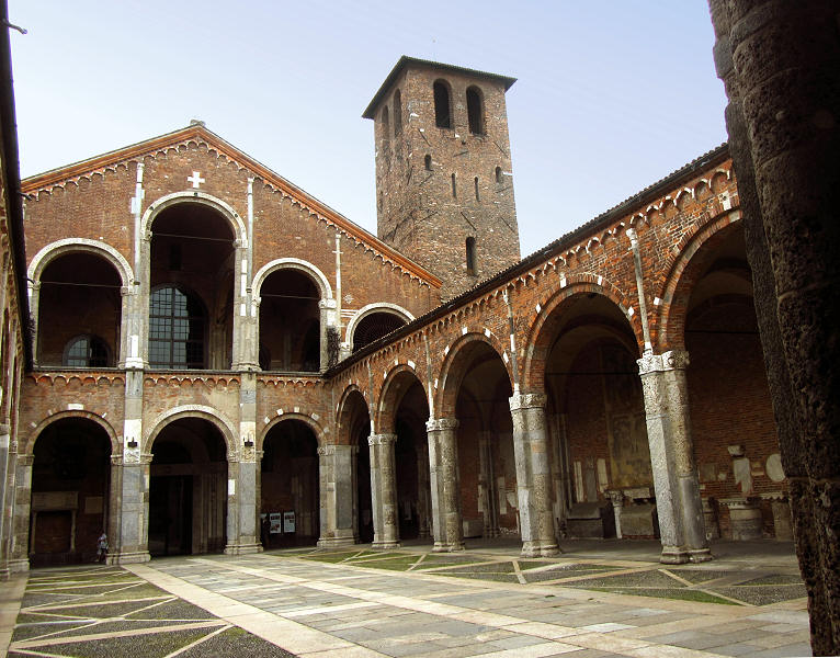 Der weitere Fußweg führt uns zur Universität und der dort gelegenen Kirche San Ambrogio. Der Sakralbau mit der Kanzel über einem Sarkophag aus dem 4. Jahrhundert und einer Säulen-Vorhalle ist sehenswert. In der Krypta liegen neben dem heiligen Ambrosius (dem Schutzpatron Mailands), noch die beiden ebenfalls mumifizierten Heiligen, Gervasius und Protasius.