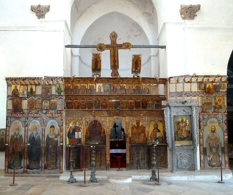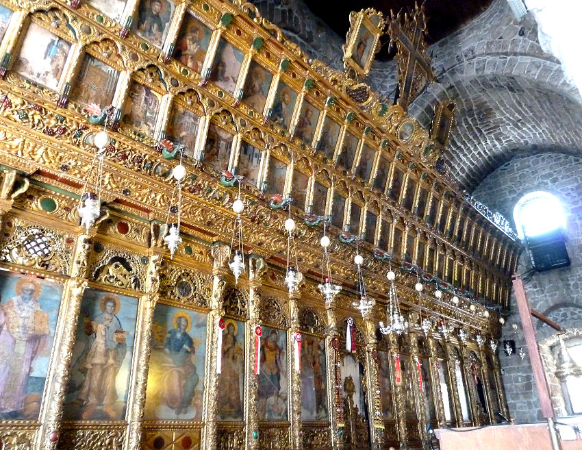 Es ist nun Mittag und brütend heiß. Wir halten in einem klimatisierten Lokal Mittagsrast, dann gehen wir weiter zum erzbischöflichen Palast. Dort ist ein weitläufiges Ikonen- und Kunstmuseum, das mehr Zeit erfordert, als ursprünglich gedacht - viele Ikonen ohne echte Highlights und es dehnt sich auch auf diverse Nebenflügel aus. Etwas geschafft schauen wir noch die auf dem Gelände gelegene, prächtig geschmückte Agios Joannis-Kirche an.