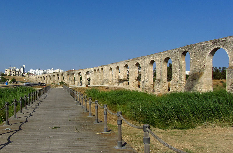 Jetzt ist es 16:00 Uhr und es fehlt nur noch der Kamares-Aquädukt. Dieser liegt an der westlichen Stadteinfahrt direkt neben der Straße nach Limassol. Die Wasserleitung aus dem Jahr 1750 wurde vom türkischen Statthalter in Auftrag gegeben, um die Stadt aus einer 10 km entfernten Quelle mit Wasser zu versorgen. Sie ist in römischem Stil errichtet und 20 der Bögen sind noch intakt.