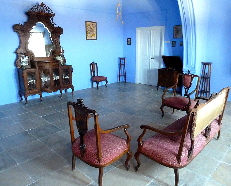 Nach diesem Erlebnis lassen wir uns etwas durch die Gassen treiben und landen im übersichtlichen Postmuseum, das aber sämtliche Marken seit der Unabhängigkeit 1960 auch noch zum Verkauf vorrätig hat! Eigentliches Ziel ist ja das Haus des Hadji Georghakis Kornesios. Er war 30 Jahre lang der christliche Vertreter gegenüber den Osmanen, also ein einflussreicher Mann im ausgehenden 18. Jhdt. Dieses wieder hergerichtete Haus zeigt die Lebensumstände der Oberschicht, die großzügigen Räume sind ausgestattet mit allem Luxus der damaligen Zeit.