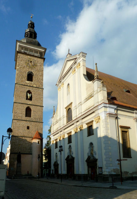 Verlassen nun das Waldviertel und überqueren bei Mitterretzbach wieder die Grenze. Im südmährischen Znaim, nur wenige Kilometer entfernt, finden wir nicht weit vom Zentrum einen Parkplatz. Es ist wieder trüb, aber wir beginnen unbeirrt mit der Erkundung der Altstadt. Starten beim Rathausturm, dem bekannten Wahrzeichen der Stadt Znaim, dann spazieren wir durch das historische Zentrum zur Michaelskirche. Eine Innenbesichtigung ist leider nicht möglich, aber immerhin kann man durch Fenster in der Türe einen Blick nach innen werfen.