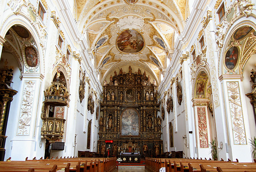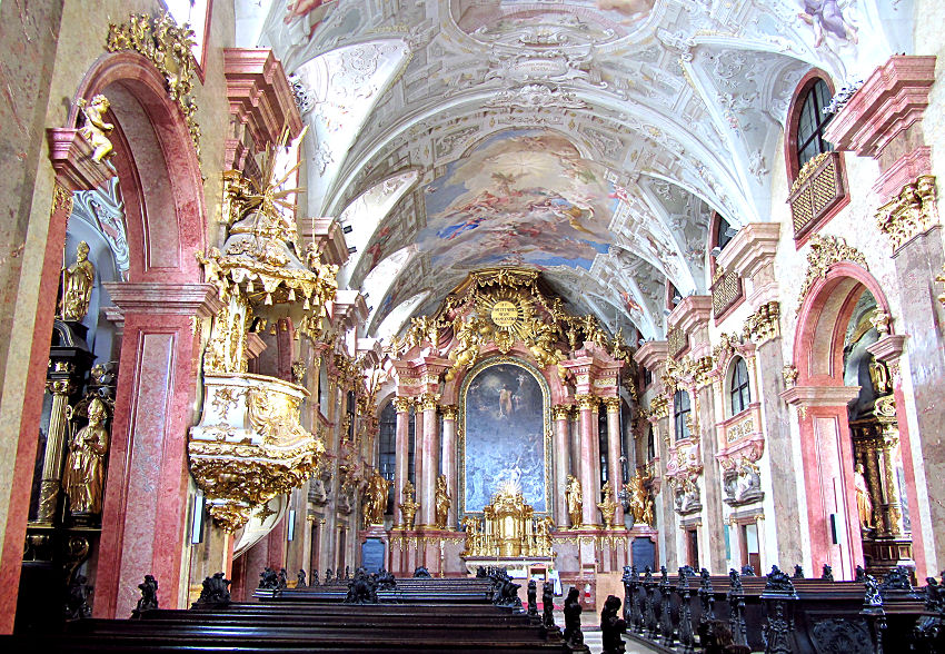 Unter kundiger und freundlicher Begleitung wird uns danach die überreiche Schatzkammer mit der "Bärenhaut" genannten Gründungschronik aus dem frühen 14. Jahrhundert gezeigt. Ebenso können wir einen Blick in die nicht öffentlich zugänglichen Bereiche der in den letzten Jahren renovierten hochgotischen Stiftskirche mit der üppigen barocken Ausstattung werfen. Dabei erfahren wir so nebenbei auch Wissenswertes über die Geschichte Österreichs.