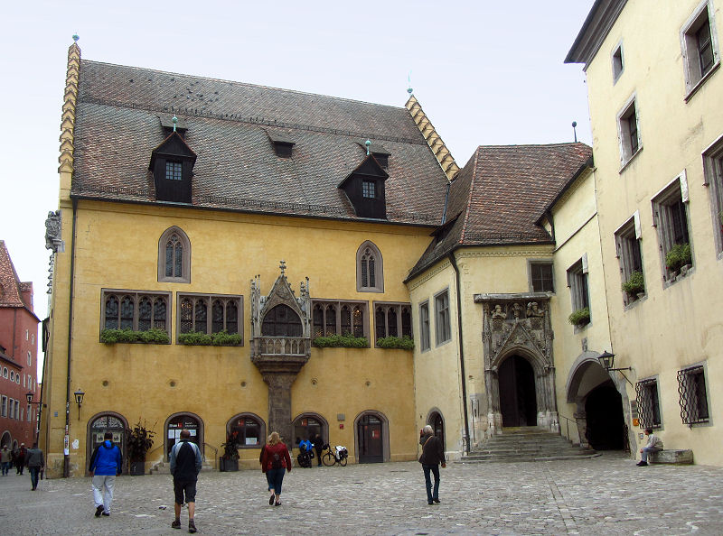 Das Wetter könnte etwas besser sein, aber unbeirrt beginnen wir unsere erste Etappe und fahren bei teils strömendem Regen an München vorbei bis Regensburg. Dort treffen wir pünktlich zu Mittag ein und stellen das Auto in einem Parkhaus ab. Spazieren zielstrebig zum ehemaligen Klosterkomplex St. Emmeram.