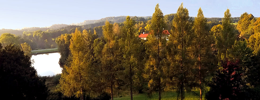 Der morgendliche Blick aus dem Hotelzimmer schweift über weite Wälder und Teiche. Hier versteht man, warum diese Gegend Waldviertel heißt!